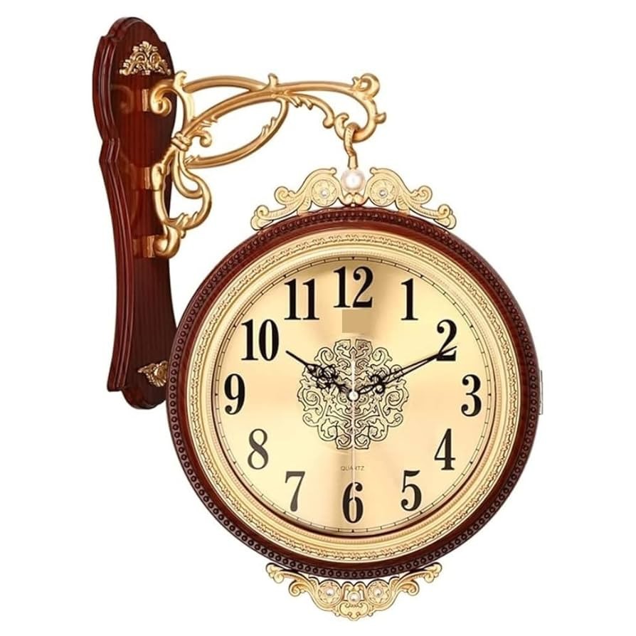 • Double sided wall clock with high quality and beautiful design. • Features a smooth machine for accurate timekeeping. • Can be hung on the wall for home interior decor. • Combines traditional, modern, antique, vintage, and classical styles. • Perfect for adding a fancy and attractive touch to any room.